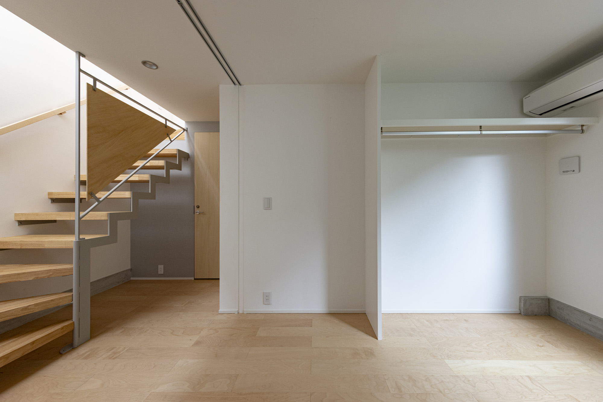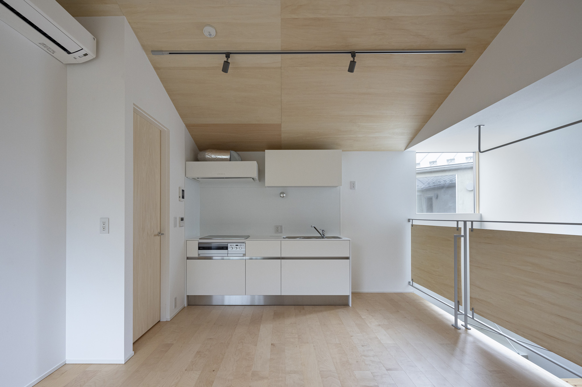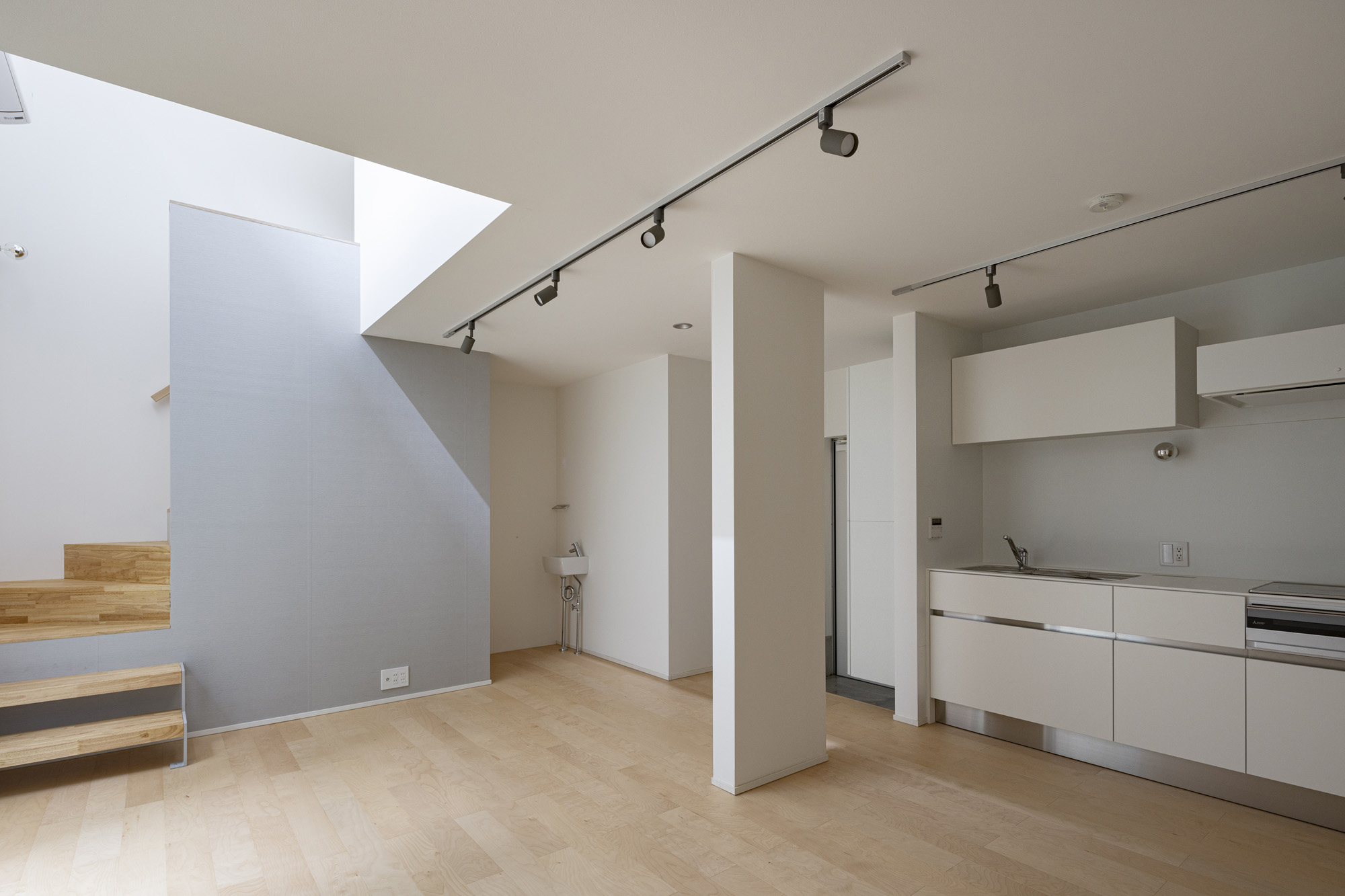 白やグレーの壁紙がやさしく空間を包み込み、落ち着いた雰囲気をつくり出す集合住宅。木目の天井やドア、柱がアクセントとなり、シンプルながらも自然の温もりを感じられる上質なデザインに仕上がっています。 キッチンは使いやすさを重視したシンプル設計で、毎日の家事がスムーズに。居室は窓から光がたっぷり入り込む明るい空間で、どんなインテリアにも馴染みやすく、心地よい暮らしを叶えてくれます。