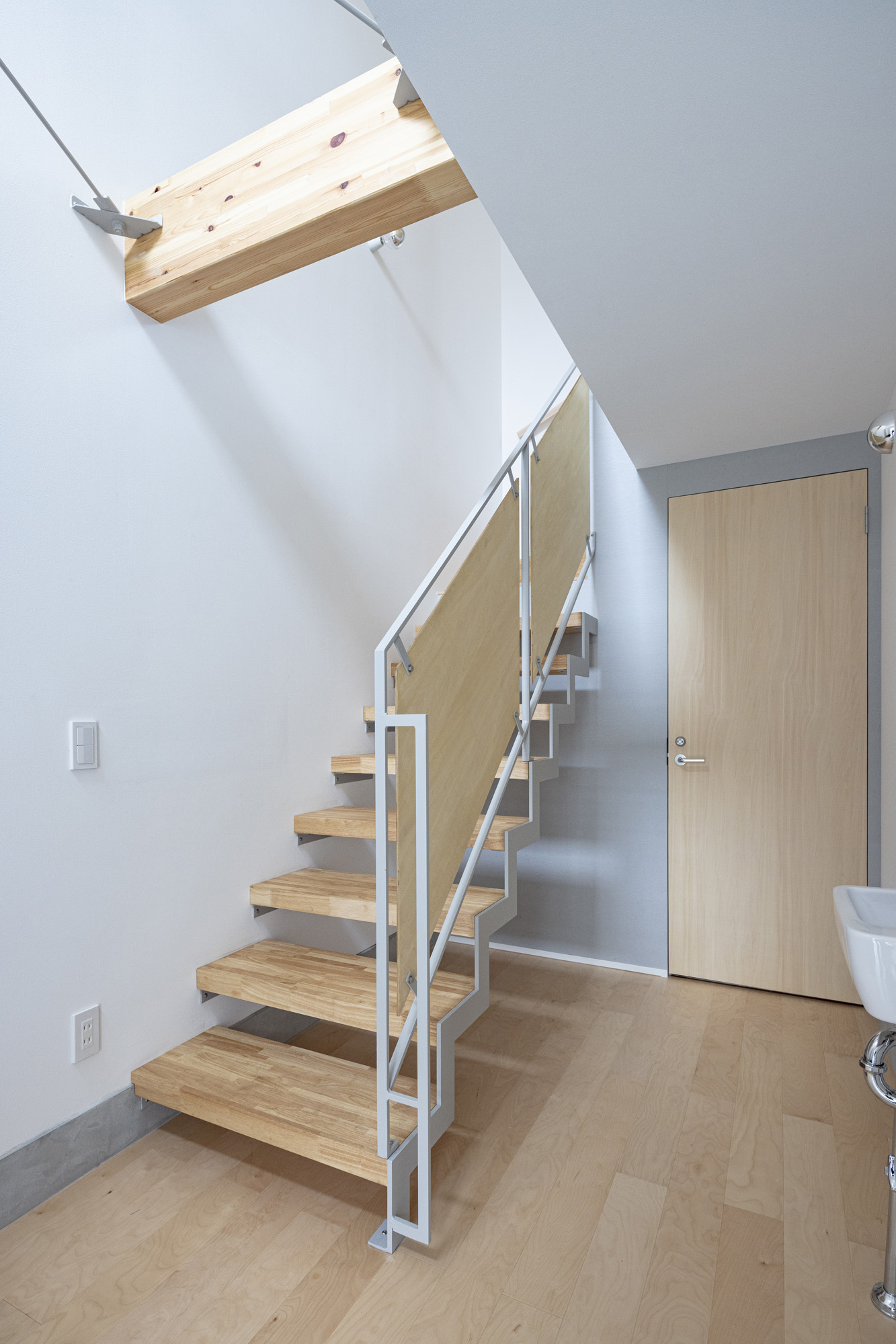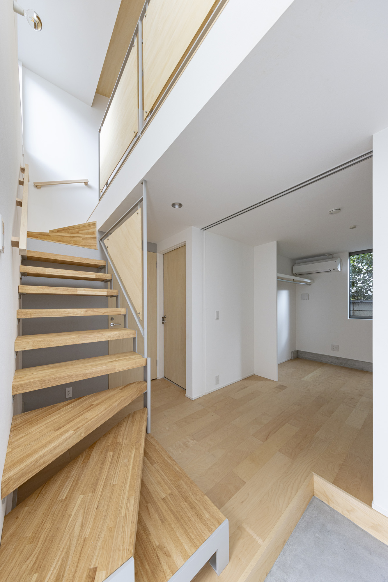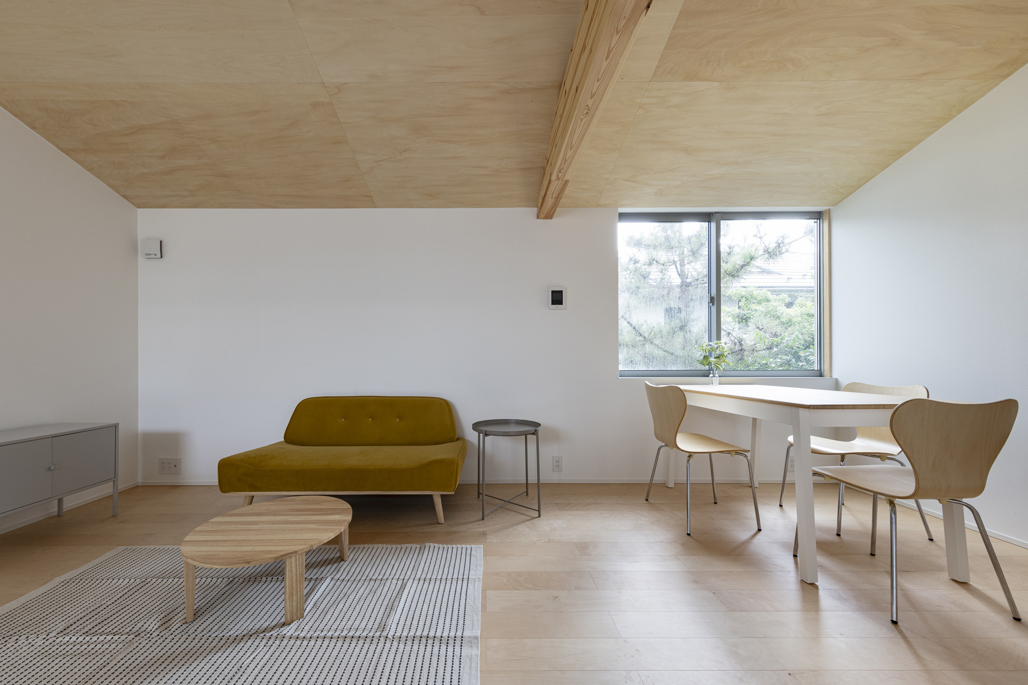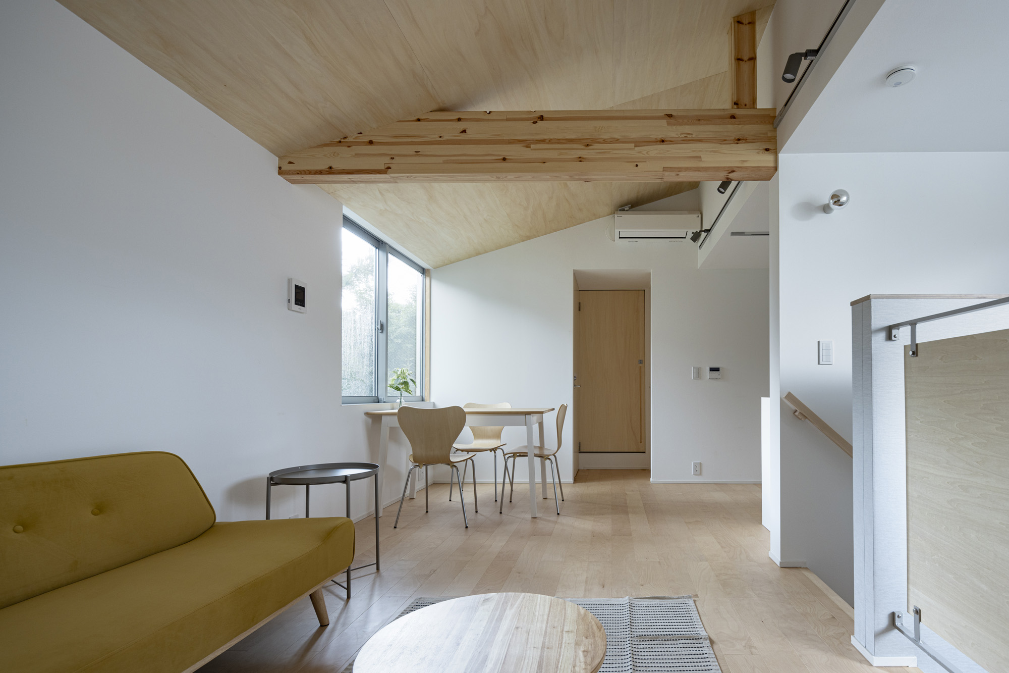 白やグレーの壁紙がやさしく空間を包み込み、落ち着いた雰囲気をつくり出す集合住宅。木目の天井やドア、柱がアクセントとなり、シンプルながらも自然の温もりを感じられる上質なデザインに仕上がっています。 キッチンは使いやすさを重視したシンプル設計で、毎日の家事がスムーズに。居室は窓から光がたっぷり入り込む明るい空間で、どんなインテリアにも馴染みやすく、心地よい暮らしを叶えてくれます。