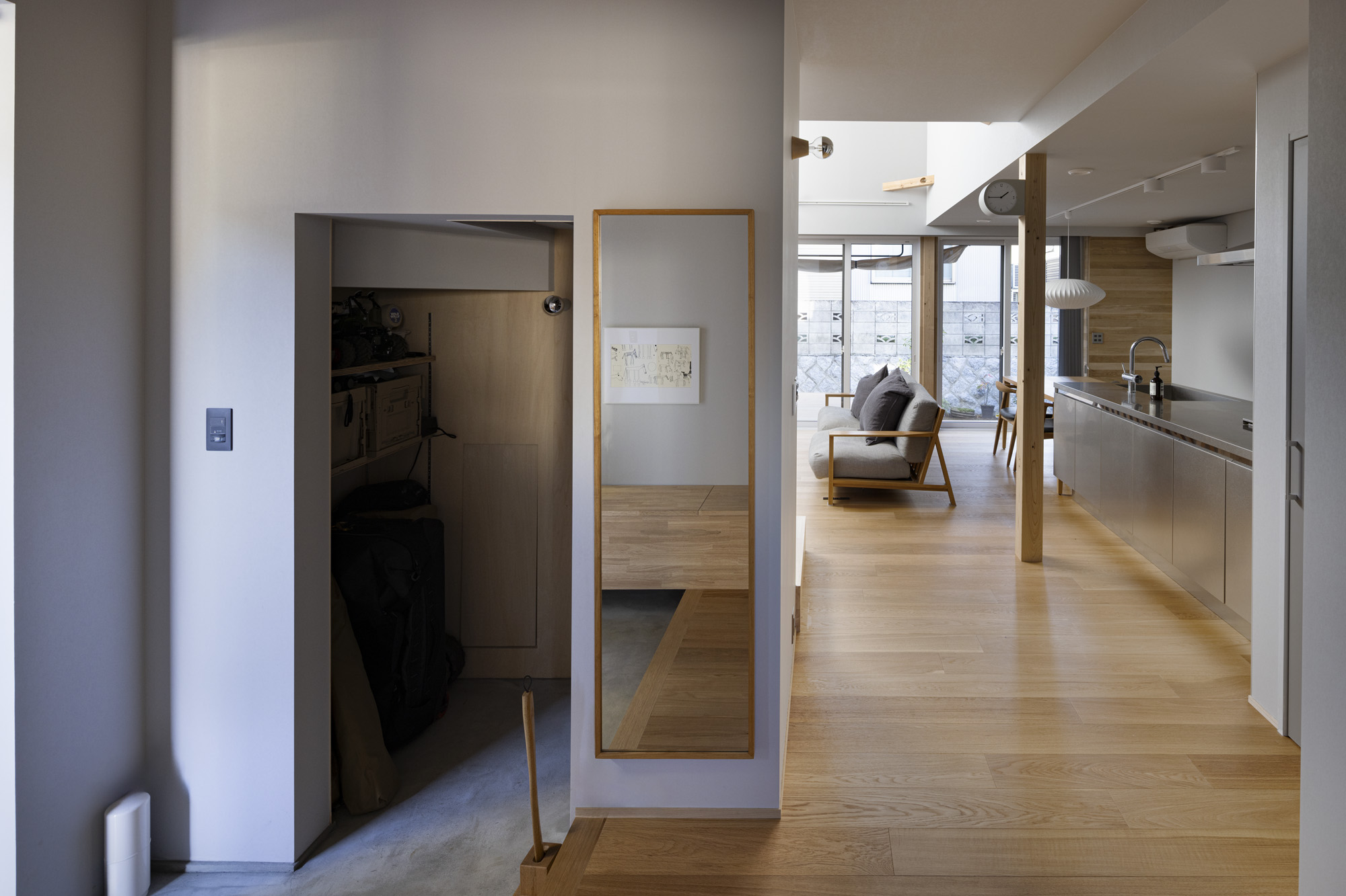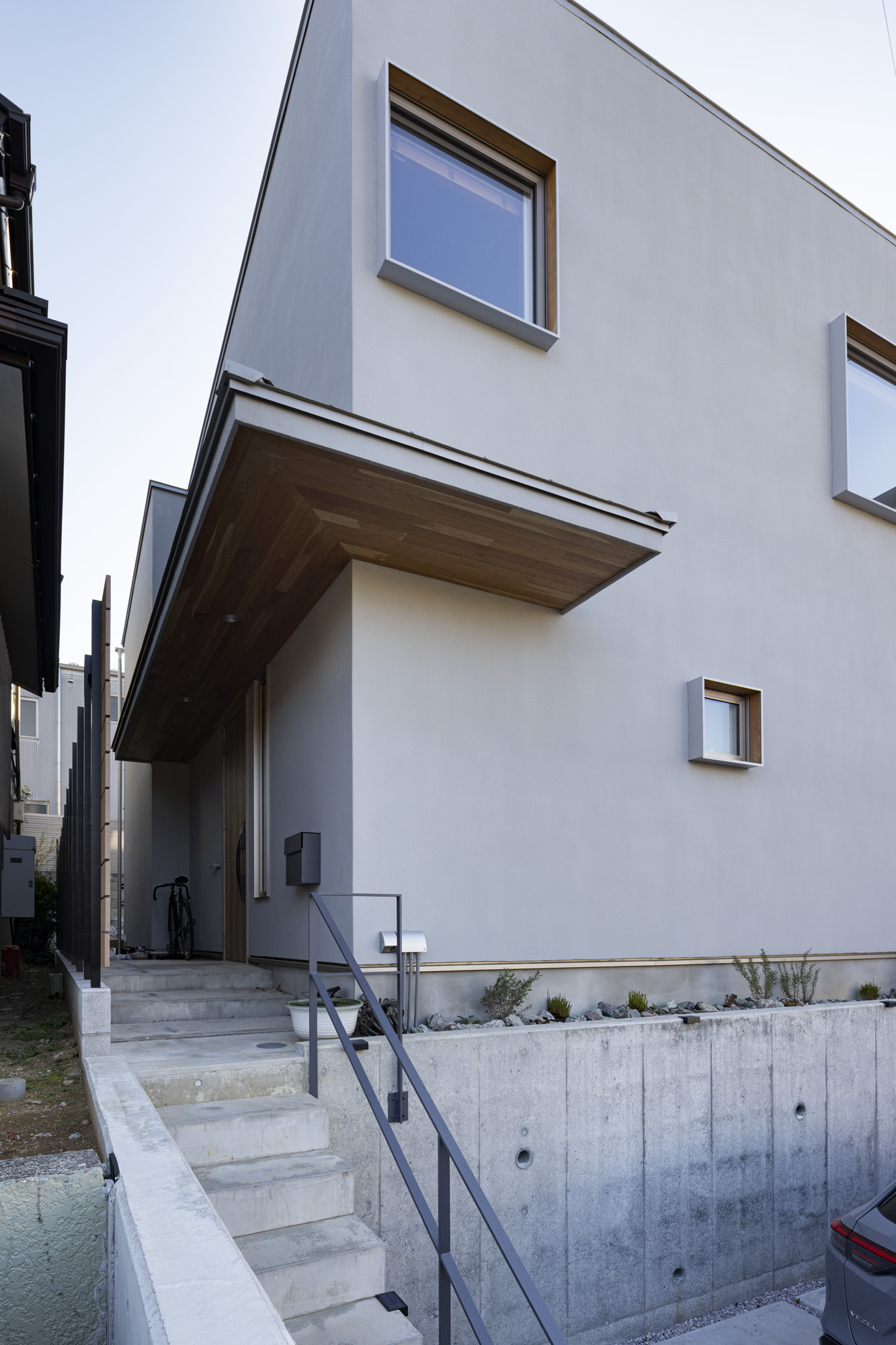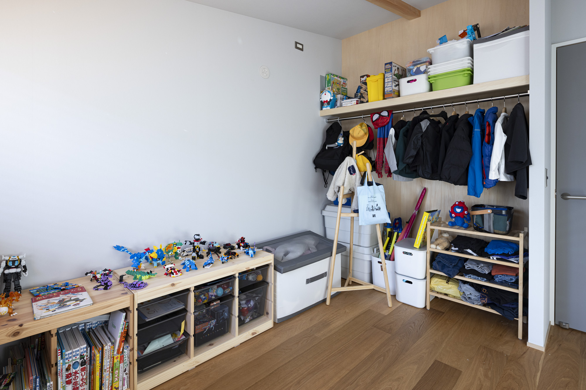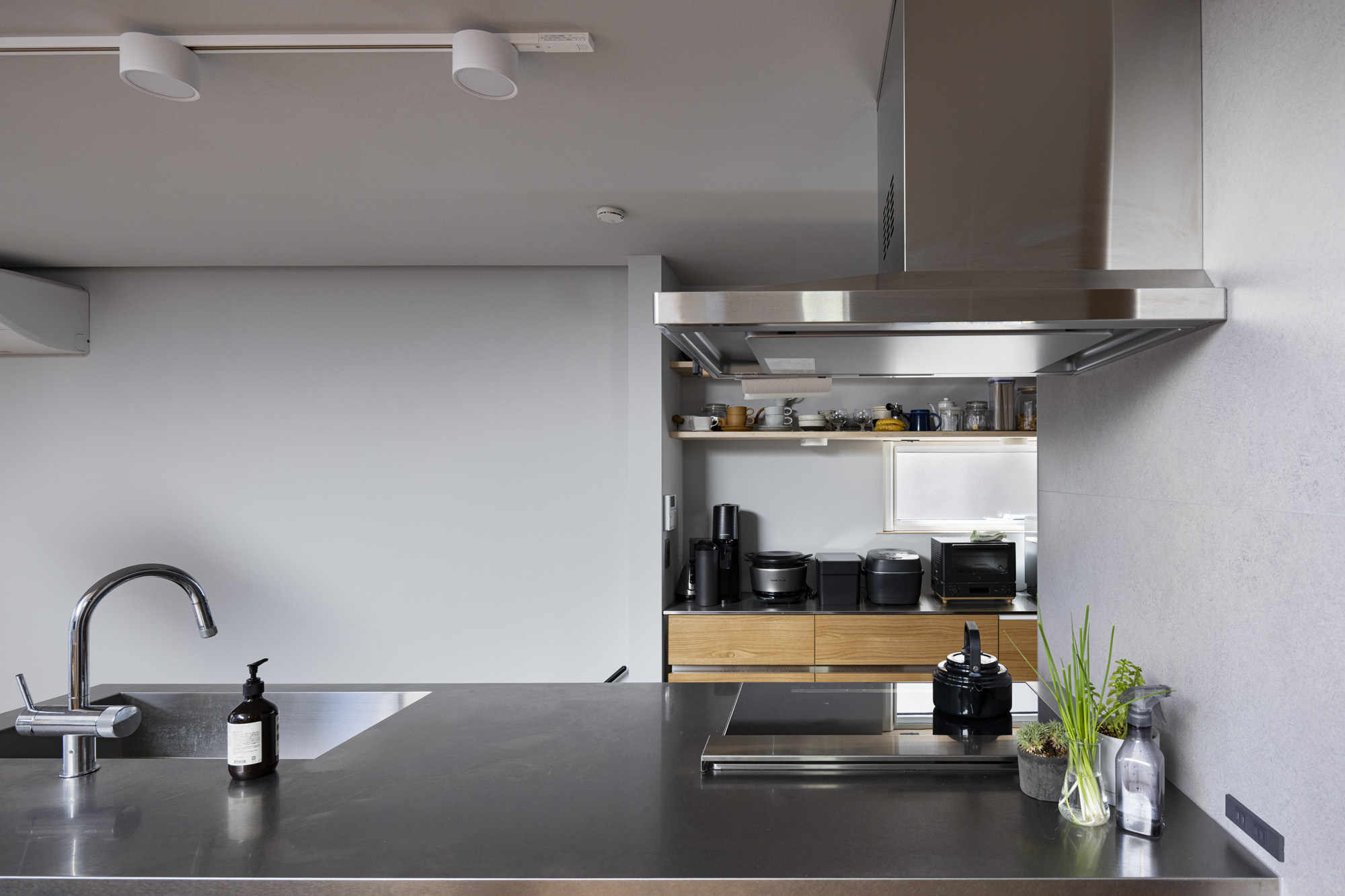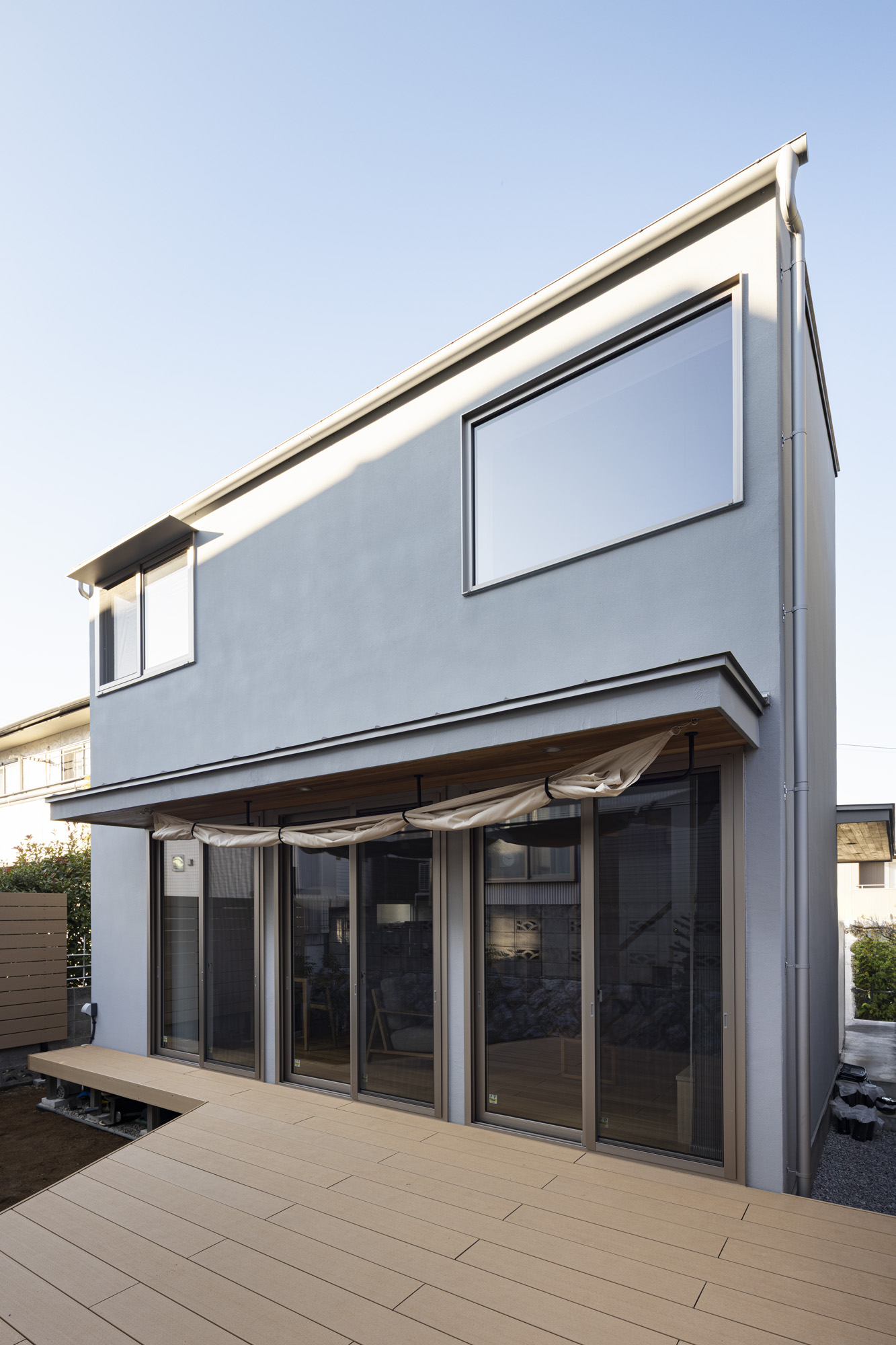 高い天井とそこへ伸びる階段が、空間にダイナミックな奥行きを生み出す住まい。木目の天井がやわらかな温もりを添え、スタイリッシュなキッチンと調和しながら上質な暮らしを演出します。広々としたパントリーは収納力抜群で、日々の家事をスマートにサポート。外へ続くデッキは、家族のくつろぎや仲間との時間をより豊かにしてくれる、心地よいアウトドアスペースです。